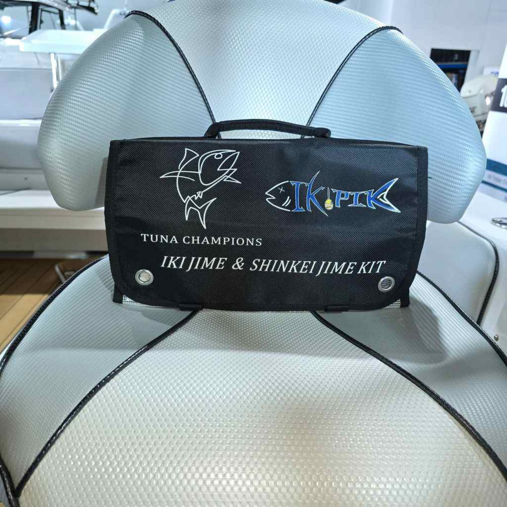 Includes an Ikipik Ikijime brain spike with bottle opener and lanyard, T piece coring tool with 360⁰ bevelled blade, Tuna blood knife, 6 inch Stainless utility knife, two lengths/guages of Shinkei spinal wires for various fish sizes/species and a washable kit bag with insert sleeves and carry handle.